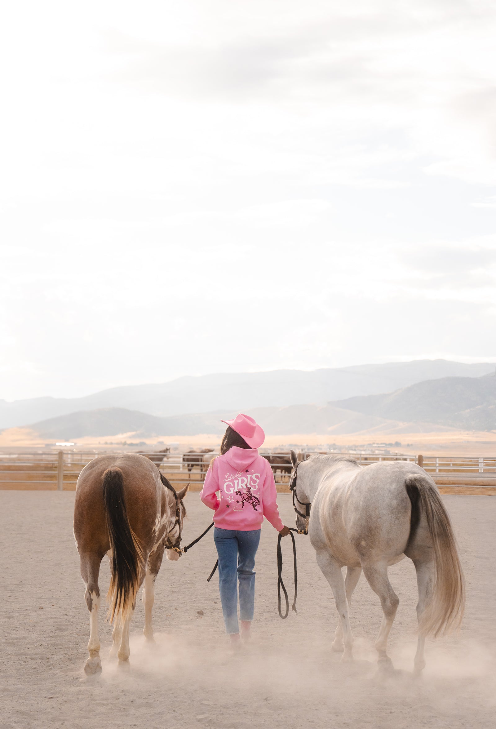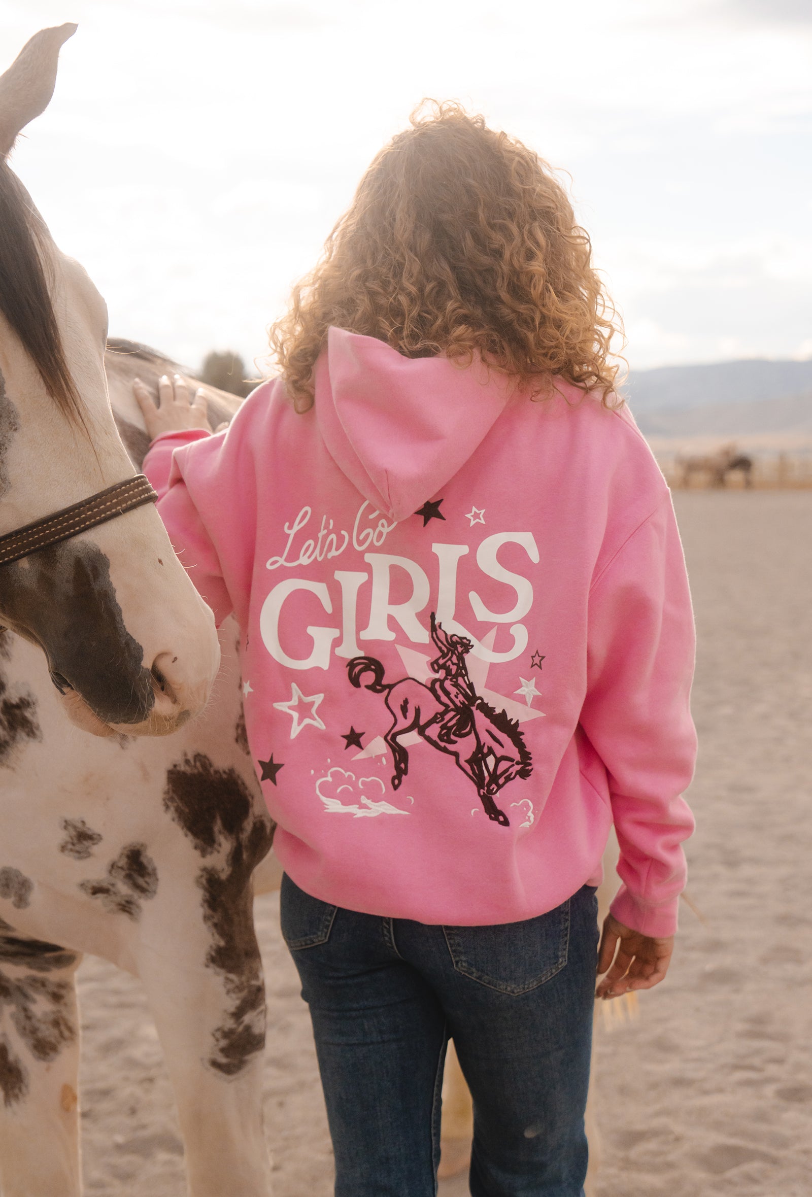 Round up your rodeo look with the Let’s Go Girls hoodie 🤠💖 Made with ultra-soft, cozy material, this limited-edition hoodie is your go-to for late-night bonfires, coffee runs, and every cowgirl moment in between. Featuring bold western artwork on the back, it blends comfort with rodeo-ready style.