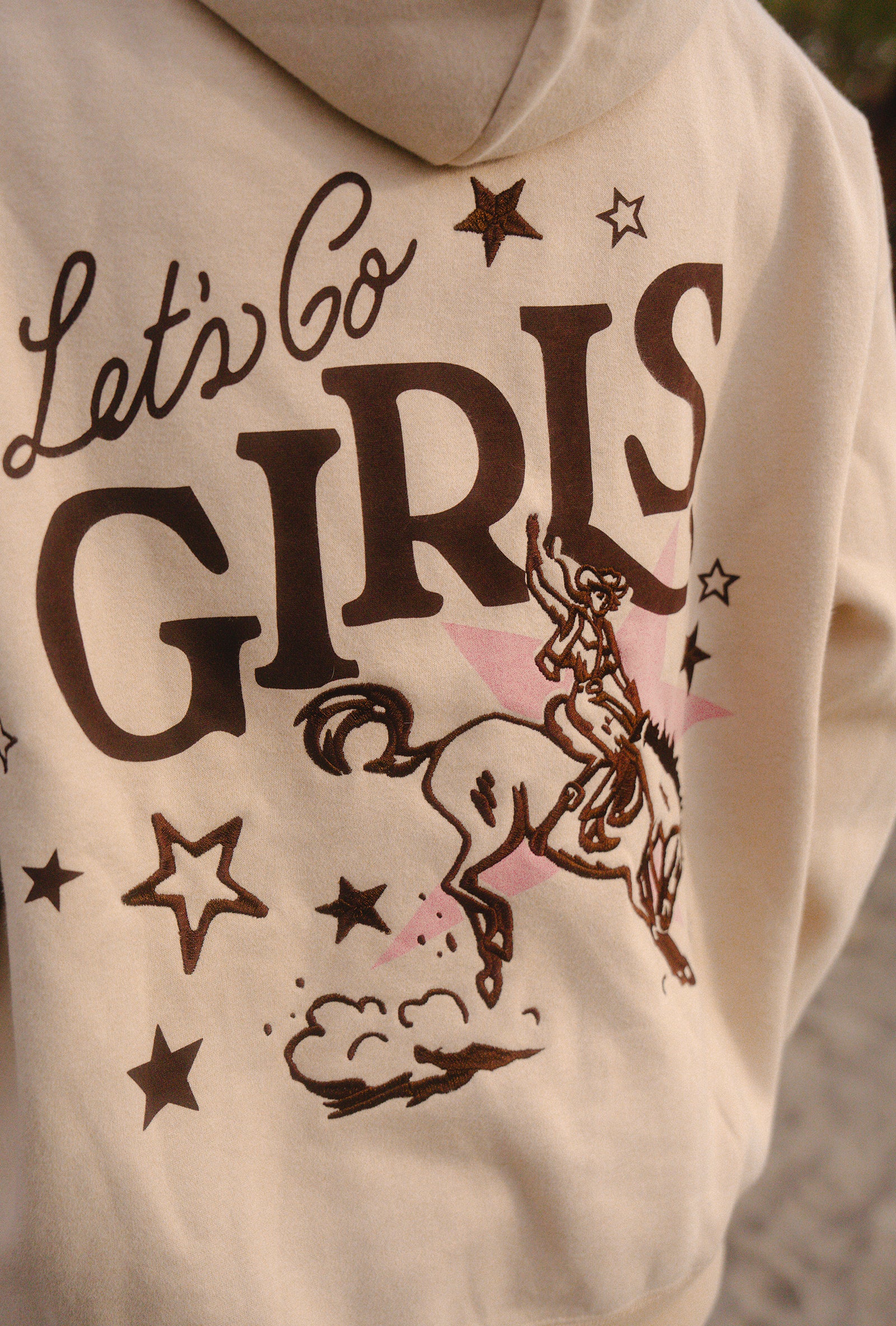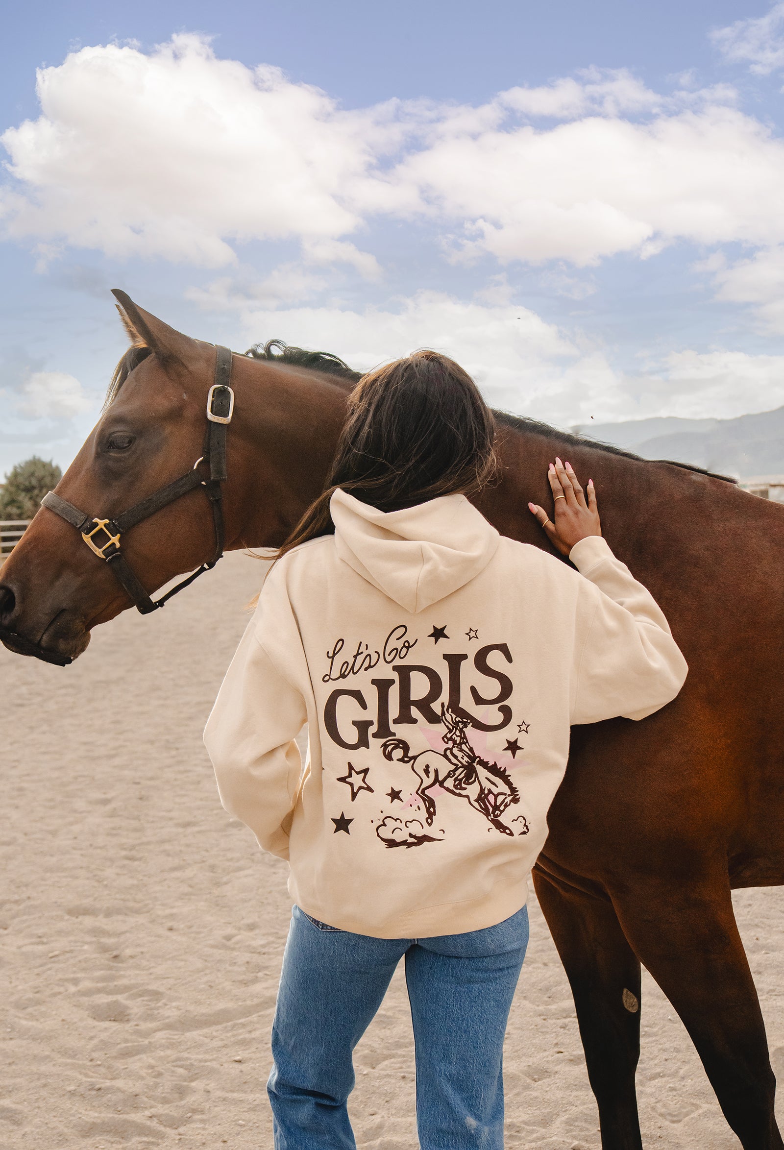 Round up your rodeo look with the Let’s Go Girls hoodie 🤠💖 Made with ultra-soft, cozy material, this limited-edition hoodie is your go-to for late-night bonfires, coffee runs, and every cowgirl moment in between. Featuring bold western artwork on the back, it blends comfort with rodeo-ready style.